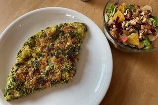 Zwiebel und Gemüse-Mischung in eine geölte Auflaufform geben und die Eiermilch angießen. Im Ofen ca. 20 Minuten backen – FERTIG!